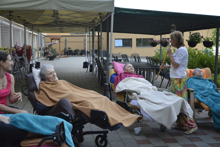 Úvod > O domově > Život v domově > Pasivní muzikoterapie s Magdou, tentokrát na terase